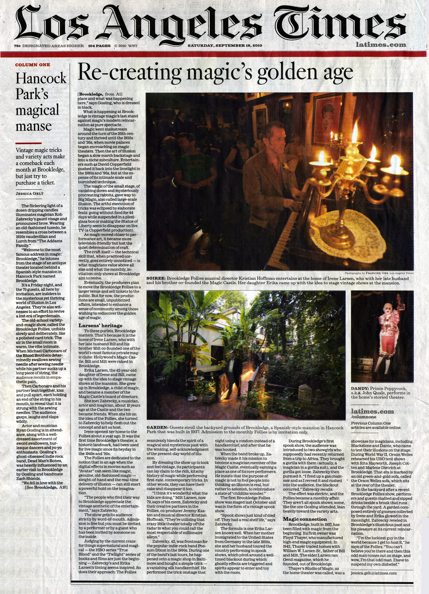![]() First off, the response to "Fop" continues to be deliriously positive - even the rare tepid reviews glow with passages of over-the-top praise. So be sure to visit the recently updated Press Page for scads of recent articles and interviews, including when The Los Angeles Times asks Kristian what he would do "If I Ran The Oscars", and the L.A. Weekly asking Kristian for "Ten Rules For Being A Fop In L.A."! Thanks to executive producer Gary Stewart, Kristian was able to mount a very ambitious solo show at the Steve Allen Theater on 4 February called "Fop Formal", so named as Kristian performed almost the entirety of "Fop" in order with a full band, a string quartet, and five back-up singers as a choir. The quartet was conducted by long time friend and ace "Fop" string arranger Jeff Bruner, and Justin Tanner conducted and arranged the parts for the choir, which included Liberty Larsen (from the Magic Castle and Brookledge) the always gorgeous Kristi Callan, and members of Justin's theatrical repertory company Tad Coughenour and Michael Halpin. The opening set was a tribute of sorts to songs from Kristian's earlier catalog, with longtime cohort Carolyn Edwards singing Mumps' classic first single "Crocodile Tears", Kristi Callan singing "Just In Time", and Steve Moramarco, band leader of the fab Abe Lincoln Story providing a typically over-the-top rollicking version of Mumps' "Brain Massage"(Listen for the screams!). Todd Lowe, longtime actor in Justin Tanner's repertory and Justin's websoap "Avenue 43", and a "True Blood" regular, gave a rousing rendition of Mumps' "Just Look, Don't Touch". Liberty Larsen sang a slinky suggestive version of the Swinging Madisons' theme song "Madison Avenue", Ann Magnuson duetted with Justin Tanner on a lovely version of "Sex In Heaven", and Prince Poppycock brought down the house with his version of "Fatal Charm". Kristian Hoffman's band, the Rock Gods, welcomed the gorgeous Miiko Watanabe on bass - already a veteran from the sold out October M Bar "Fop" release party show - and a thrilling first time collaboration (hopefully beginning a long musical relationship!) with the magnificent blazing guitar stylings of Marcus Watkins, of Nina Hagen and Double Naught Spy Car fame. The show was over capacity with a line around the block, and extra seating had to be added. The warm audience was filled with wonderful talents and personalities like Adele Bertei, Lisa Jenio, Jonathan Lea, Darian Sahanaja, Steve Stanley, Ivy Rorschach, Rocky Schenck, and of course, Pat Loud herself. You can read a lovely (but somewhat inobservant - "Soothe Me" was NOT performed, more's the pity!) review by the wonderfully supportive Roy Trakin here. On other fronts, Kristian's remixes of "Soothe Me", produced and performed by Paolo Cilione and Claudio Camaione of Blow Up , are finished, and currently being mastered for an early summer release. The format being planned is a special limited edition 12" vinyl record, with three mixes: A short remix with piano overdubs, and a long remix with harpsichord overdubs, both of which include new vocal overdubs, inlcuding a brand new verse, by Prince Poppycock - and for the first time ever, the full length "Fop" album version which includes a previously unreleased lengthy instrumental jam and breakdown at the end. All three mixes will also be released digitally, of course! Justin Tanner also directed the FIFTH offical "Fop" music video, "I Can't Go There With You", with scenes filmed at Brookledge with Rob Zabrecky and Liberty Larsen, plus the gorgeous Carolyn Edwards and Kristi Callan as the back up singers. This joins the ever popular "Hey Little Jesus, Get Out Of That Hole" (the video that launched a thousand Facebook unfriendings!), the little seen and slightly more academic "Hey Little Jesus, Get Out Of That Hole (Book Version)", the gorgeous Sandra Powers directed, Timur Bekbosunov featuring "Out of the Habit", and the other Brookledge-centric, Rob Zabrecky starring, Jeremy Kasten directed video "Ready or Not". A new video of "Mediocre Dream", directed by Justin Tanner and starring the cast of "Avenue 43" is nearing completion. Earlier in the new year, Kristian music-directed Ann Magnuson's two sold out "Ann Does Bowie" shows (for which Kristian designed the Diamond Dogs flyer) at the Steve Allen, with special guest sar, raconteur and bon vivant Michael Des Barres taking over vocal chores on "All The Young Dudes" and Kristian singing one of Bowie's most beautiful songs from his Ken Pitt period, "In The Heat Of The Morning". Plans to take the show to Seattle and Portland this summer are currently underway. And if that weren't enough, Ann Magnuson and Kristan are going to be in San Francisco on March 31rst, co-headlining the hot cult TINGEL TANGEL CLUB: THREE YEAR ANNIVERSARY party at Cafe Du Nord. Hope to see you there! Meanwhile, for more regular posts and updates, be sure to follow Kristian's Facebook Page ! Now it's official: Both Magnet and Metal Jazz have called "Fop" a "Masterpiece"! So it's no wonder, at Kristian's SOLD OUT November 2nd Record Release Party at the glamorous Red Velvet and Chandelier M Bar in Hollywood, "The audience, needless to say, virtually levitated in rapture from their red-leatherette furnishings!" (-Metal Jazz) A fantastic time was had by all, with hostess Ann Magnuson keeping everyone rapturously engaged and showing the occasional leg to wild applause; the Brookledge Follies' own Miss Liberty Larsen opening the show with an unreleased brand new Hoffman original, "That Kind Of Lie", and the wildly gifted Timur Bekbosunov and his Dime Museum getting a foot stomping, howling, screaming standing ovation for his maniacal interpretation of the Hoffman classic "Total Eclipse", as well as singing two other Hoffman songs from Timur's new CD: "That's Something New" and his delightfully countrified take on "Lite of the World". You haven't really lived until you've heard the towering lanky velvet beclad Timur sing in the